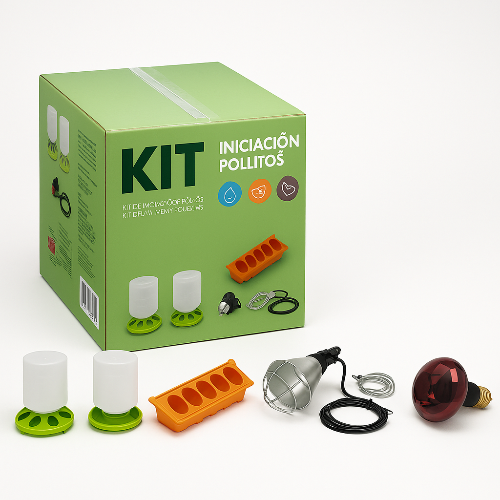 Este kit foi desenvolvido para facilitar os primeiros passos na criação de pintainhos, oferecendo tudo o que precisas para garantir conforto, nutrição e aquecimento adequado aos recém-nascidos.